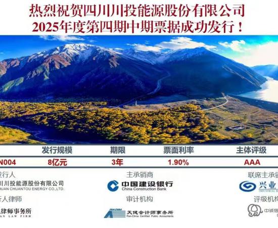 • 川投能源成功發(fā)行8億元中期票據(jù)